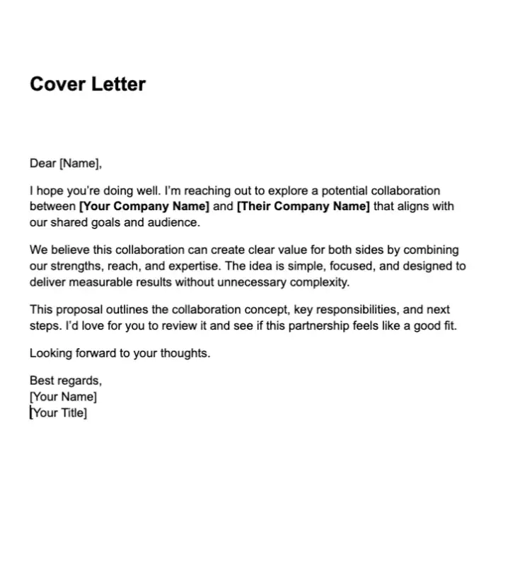 A well-organized template ensures your proposal looks clean and professional. This builds credibility and shows your potential partners that you take the collaboration seriously.