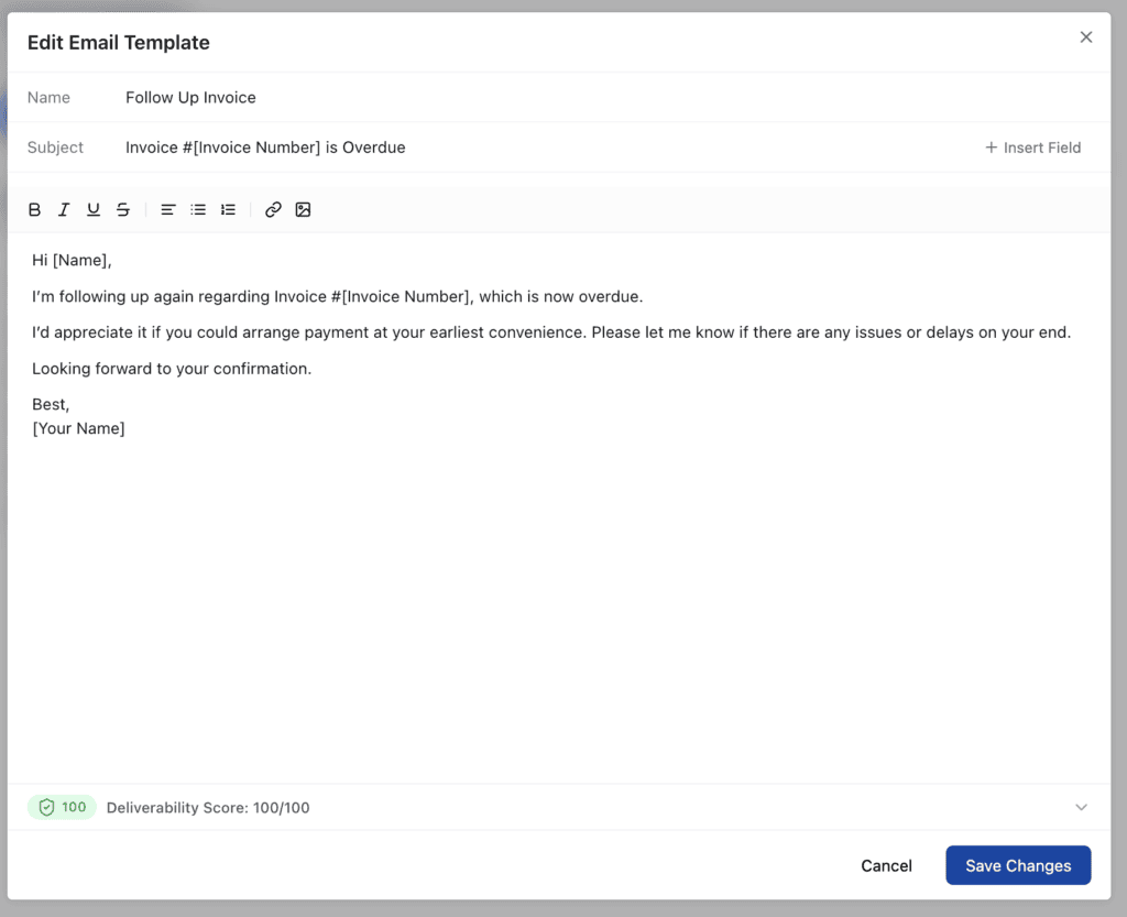 Use Templates: Speed up recurring communication with saved templates and dynamic fields.