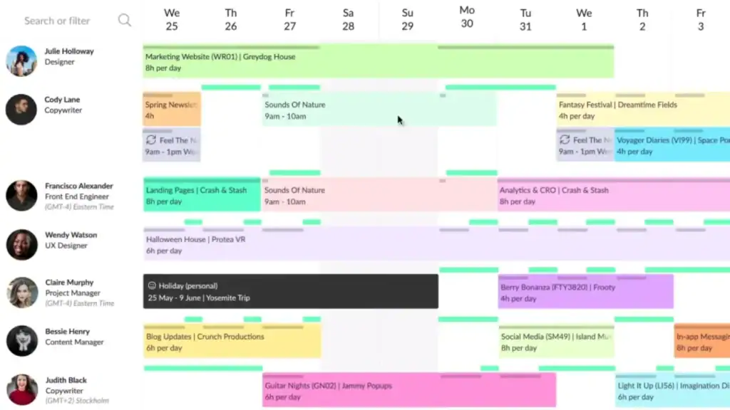 | Resource Guru | Resource allocation | Clear scheduling and calendar views | Minimal task/project management features |